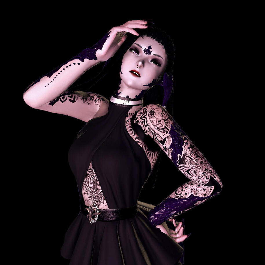 Gwen is a gothabilly female highlander with oni horns and dark spooky tattoos. She may look intimidating, but she's rather nice, especially if you buy her a drink.Available for sfw and nsfw posing.